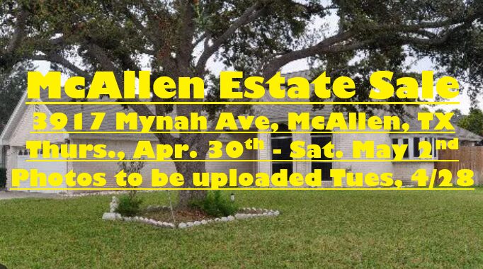 McAllen Estate Sale 3917 Mynah Ave, McAllen, TX Thurs., Apr. 30th – Sat. May 2nd